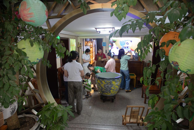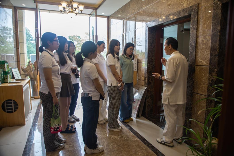 随后考察团一行乘坐观光车到何氏药浴总店参观考察。考察团的导师和研究生们亲身体验了新繁传统药浴后,深有感触地说,我们中国的中医文化真是博大精深,我们值得与新繁传统药浴携手研发以柚叶等为原材料的药浴产品,将三者深度融合,让乡村的文化资源(非遗)转化为发展资源,实现非遗保护与经济发展双向赋能,让乡村既有“文化味”,又有“烟火气”,更有为大众健康将中医健康元素和理念融入探索“中医+乡村精致康养”的乡村振兴新模式。